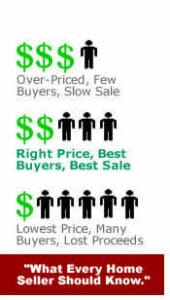 “What’s wrong with pricing my home a little high?” Price your home too high and most buyers won’t even bother looking at it. Over priced homes tend to sell the competition first. This scares away many qualified buyers simply because they can elsewhere and get more house for the money. As the house sits on the market, people will shy away from it thinking there must be something wrong with the home.